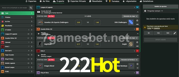 A aposta 222Hot oferece aos jogadores a experiência mais conveniente de apostas em eSports!
